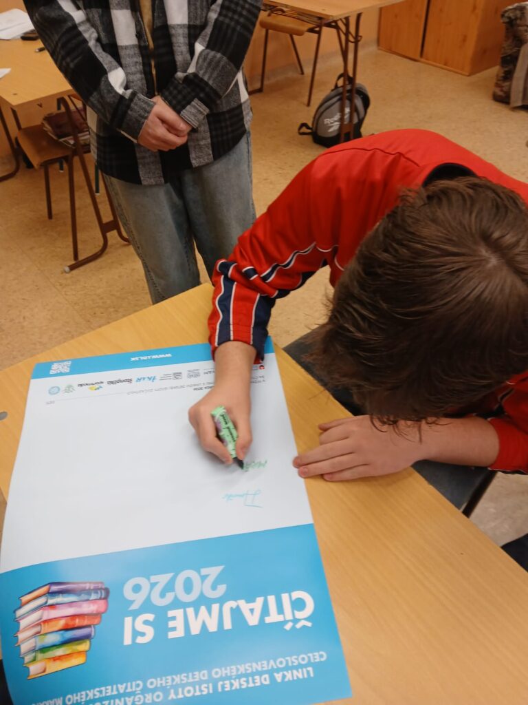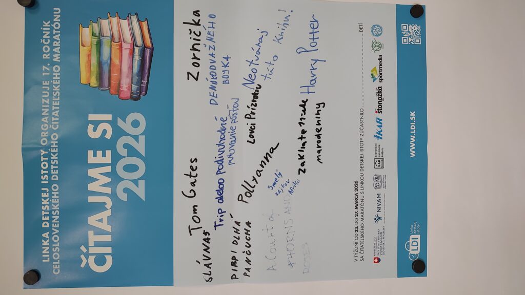 Prijímačky na nečisto Čitateľský maratón Čítajme si … 2026 Čitateľský maratón vyhlásila Linka detskej istoty. Realizovali sme ho 26. marca 2026. Natália Bajtošová | 26.3.2026 21:47:25 | Aktivity v oblasti prevencie, Fotogalérie, Študenti