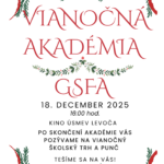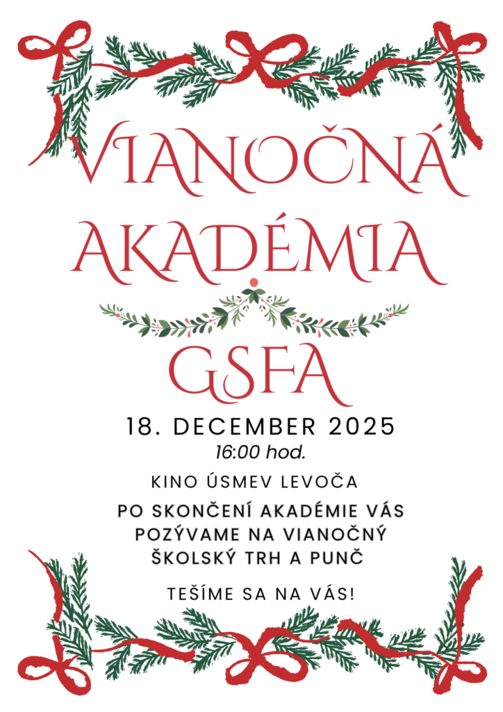 V závere kalendárneho roka 18. decembra 2025 sa uskutočnila Vianočná akadémia, ktorá vytvorila krásnu sviatočnú atmosféru. Žiaci svojimi hudobnými, speváckymi a dramatickými vystúpeniami priniesli radosť a vianočné naladenie všetkým prítomným. Program v spojení s vianočným bazárom a tradičným punčom bol milým pripomenutím hodnôt Vianoc – pokoja, radosti a vzájomnej blízkosti – a spríjemnil spoločné chvíle strávené v školskom spoločenstve.