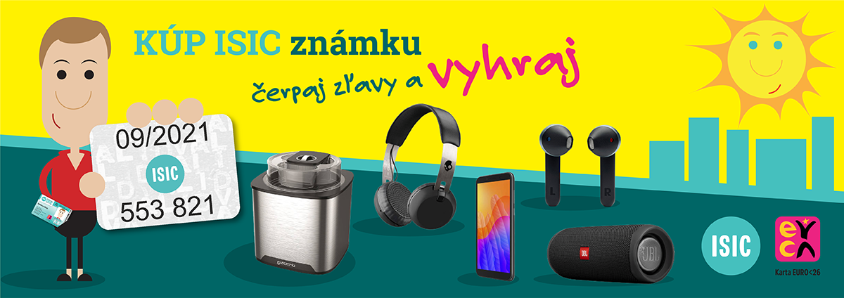 POZOR! Je tu veľká súťaž o fantastické ceny s preukazom ISIC/EURO26. Súťažíme o hodnotný smartphone, zmrzlinovač na leto či bluetooth JBL slúchadlá a ďalšie! Viac na FB https://www.facebook.com/photo?fbid=2651037675000255&set=a.337447863025926